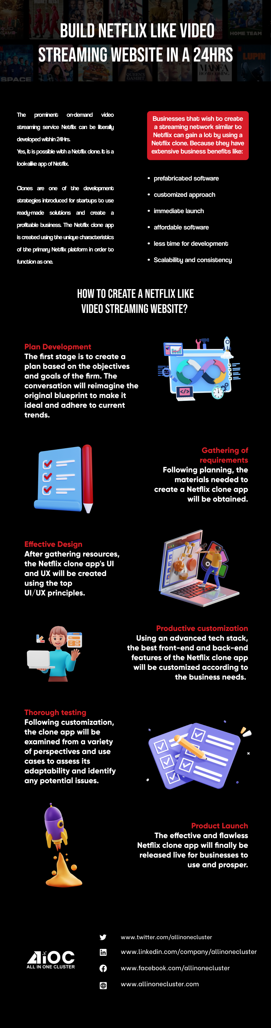 The prominent on-demand video streaming service Netflix can be literally developed within 24Hrs. Yes, it is possible with a Netflix clone. It is a look-alike app of Netflix. Clones are one of the development strategies introduced for startups to use ready-made solutions and create a profitable business. The Netflix clone app is created using the unique characteristics of the primary Netflix platform in order to function as one.
