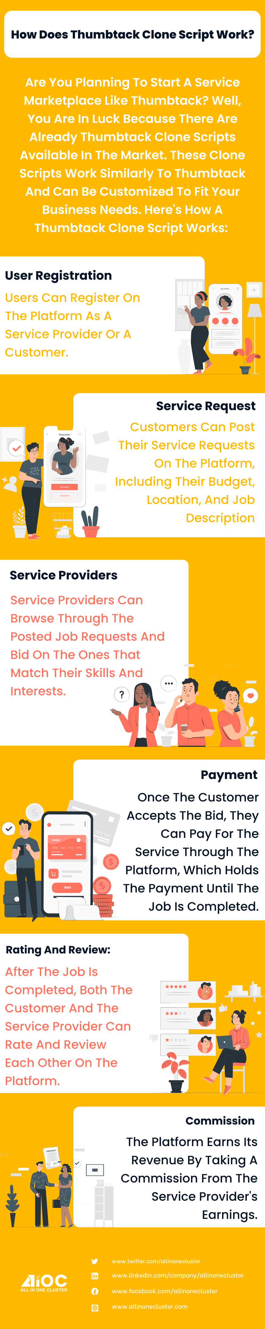 Are you planning to start a service marketplace like Thumbtack? Well, you are in luck because there are already Thumbtack clone scripts available in the market. These clone scripts work similarly to Thumbtack and can be customized to fit your business needs. Here’s how a Thumbtack clone script works: