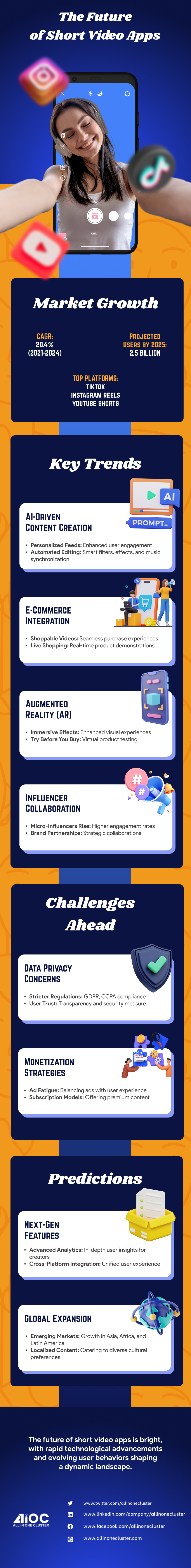 The Future of Short Video Apps #Infographic The future of short video apps is bright, with rapid technological advancements and evolving user behaviors shaping a dynamic landscape.Stay tuned for more engaging, personalized, and immersive experiences! Contact Us Your name Your email Subject Your message (optional) Δ